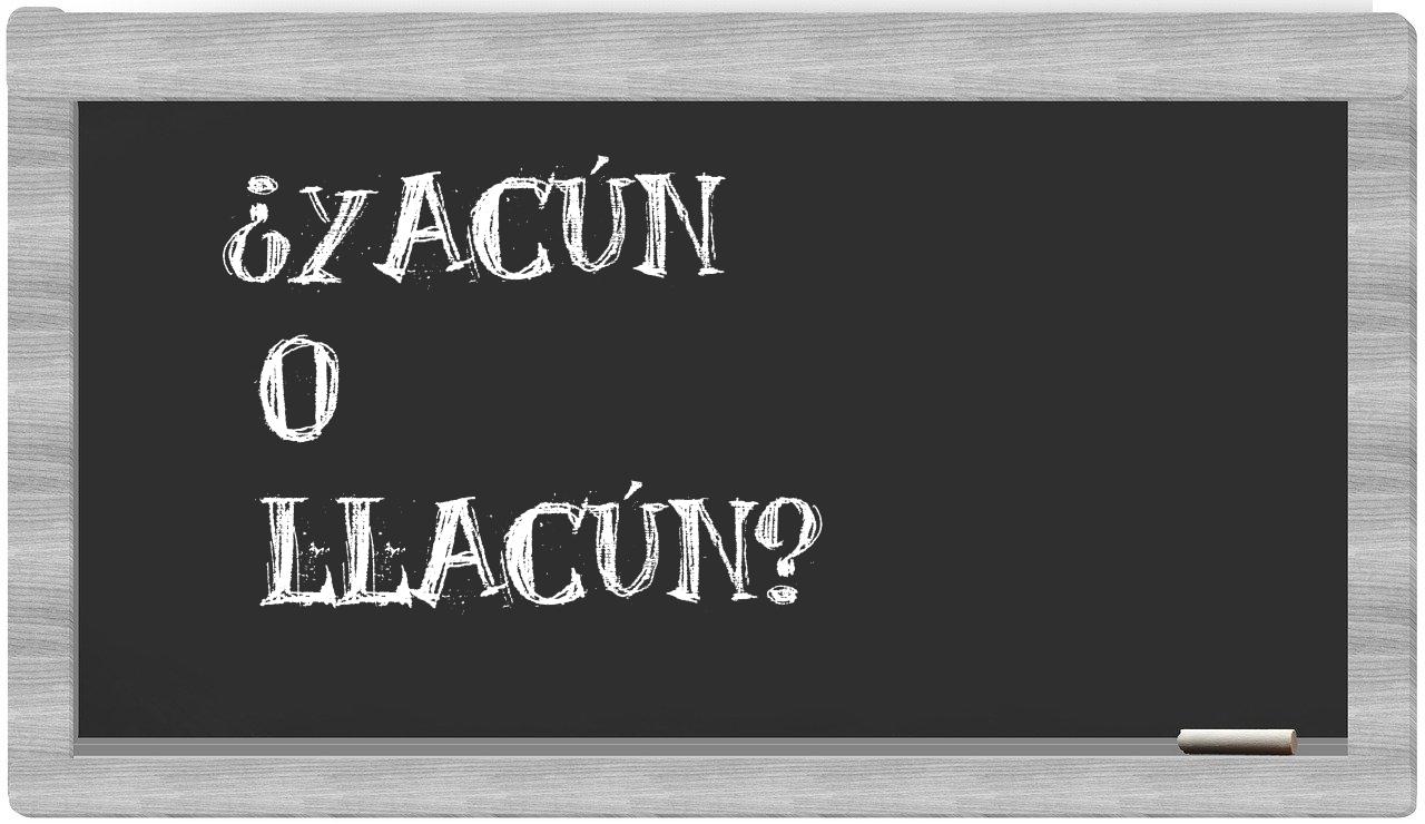 En la situación particular que involucra los términos yacún y llacún, no deberías tener ninguna vacilación, puesto que únicamente yacún se encuentra correctamente redactada. Por otro lado, llacún no se encuentra reconocida en el Diccionario de la Real Academia Española.
