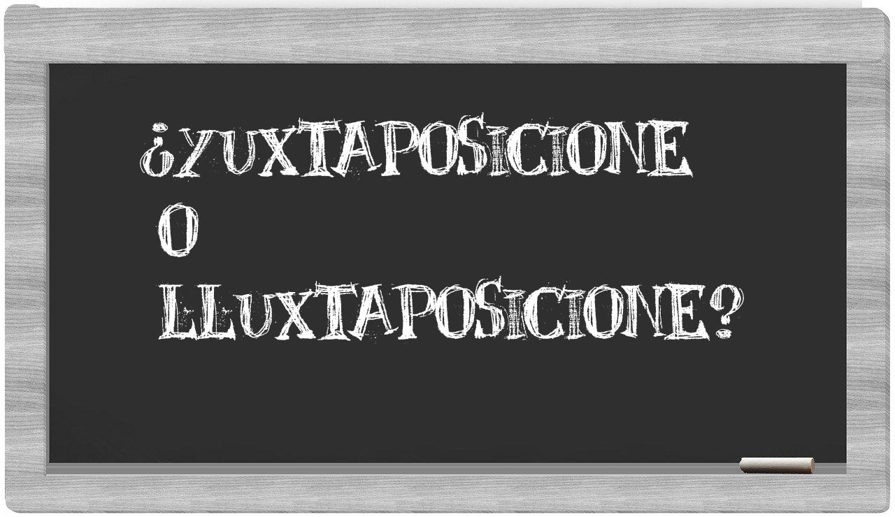 Cuando se trata de la distinción entre yuxtaposicione y lluxtaposicione, no deberías tener la menor incertidumbre, puesto que únicamente yuxtaposicione se halla registrado correctamente. Por otro lado, lluxtaposicione no figura en el Diccionario de la Real Academia Española.